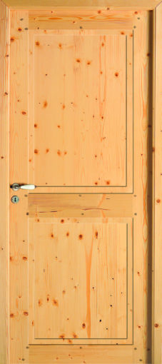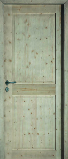 La porte Danube est exclusivement disponible en épicéa afin de bénéficier d'un bois très typé avec de nombreux nœuds apparents.