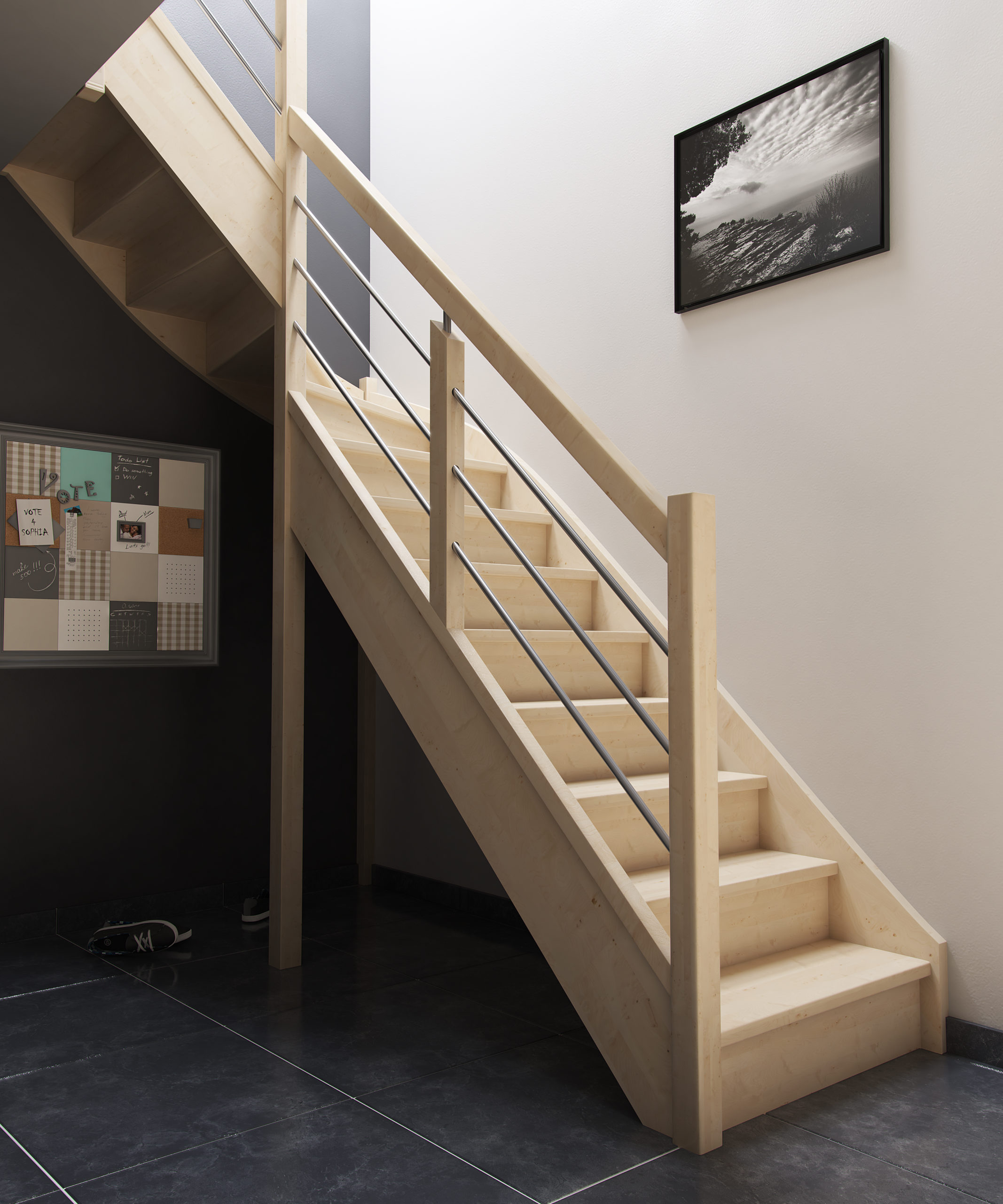 Escalier à structure limons latéraux avec ou sans contremarches en bois.