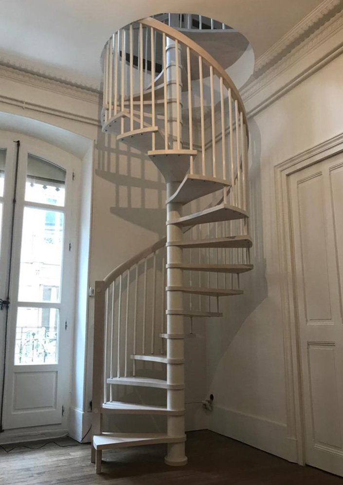 L'escalier hélicoïdal Kara permet une communication fluide entre les étages avec une légèreté dans la structure de l'escalier. Son diamètre lui permet d'être installé aussi dans les plus petits espaces.