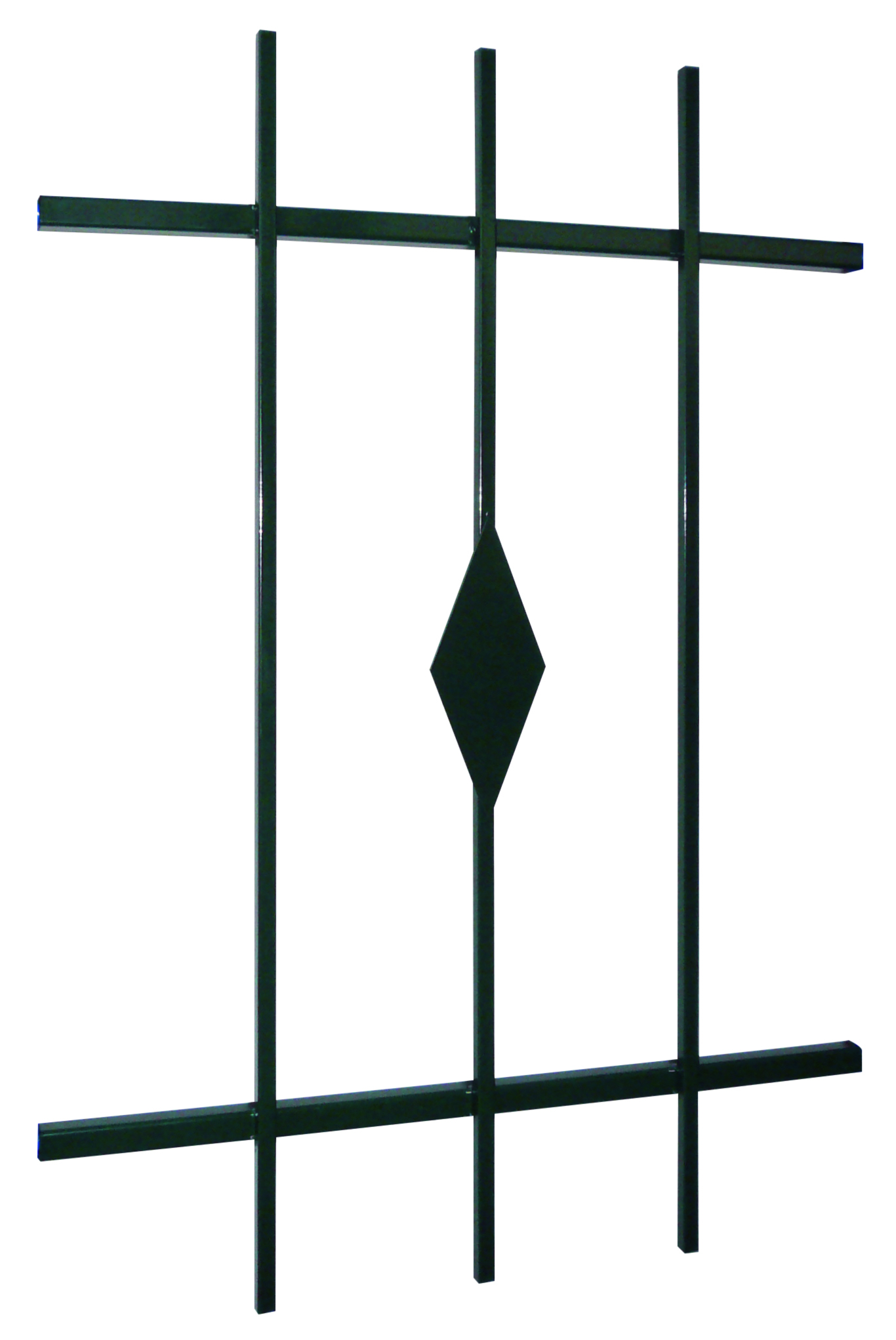 La grille de défense Elégance est composée de traverses tube de 20 avec un barreaudage carré plein de 12 dont un losange tôle de 2.