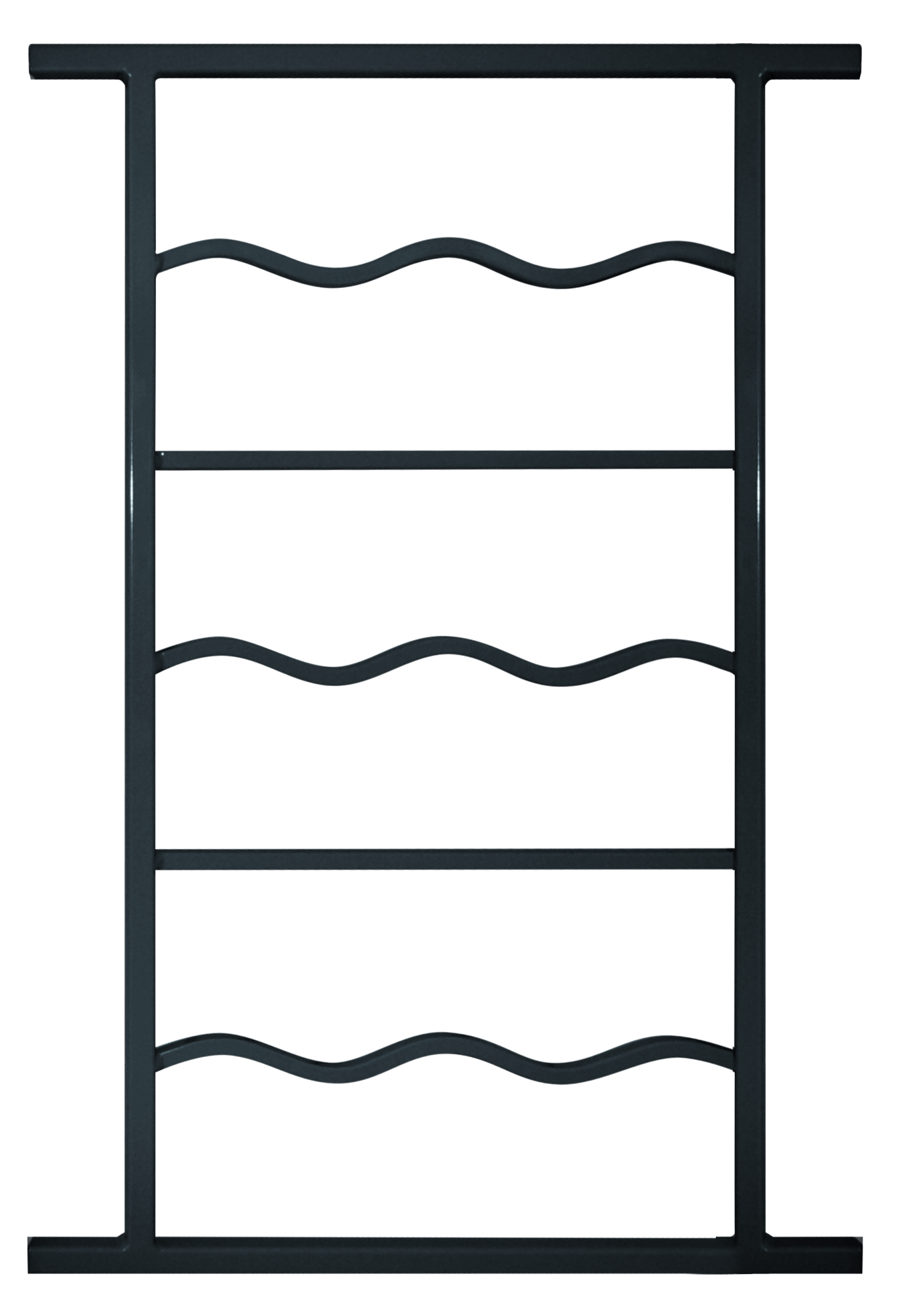La grille de défense Littorale est composée de traverses tubes de 20 avec un barreaudage carré plein de 12 dont un barreau sur deux est ondulé. L'assemblage des barreaux et de l'encadrement s'effectue sur le même niveau.