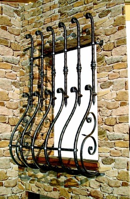La grille de défense n°15 galbée Cannes dispose de lignes arrondies et renforcées majoritairement par les bagues aux niveaux des barreaux supérieurs.