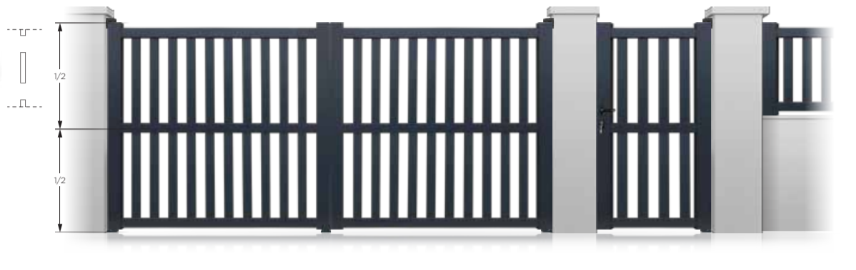 Le portail Calvados est composé exclusivement de lames verticales ajourées.