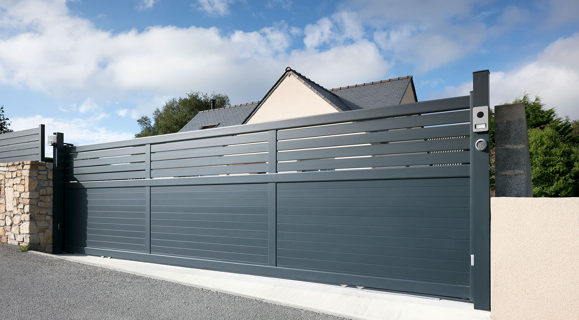 Poignée et embouts laqués à la couleur du portail