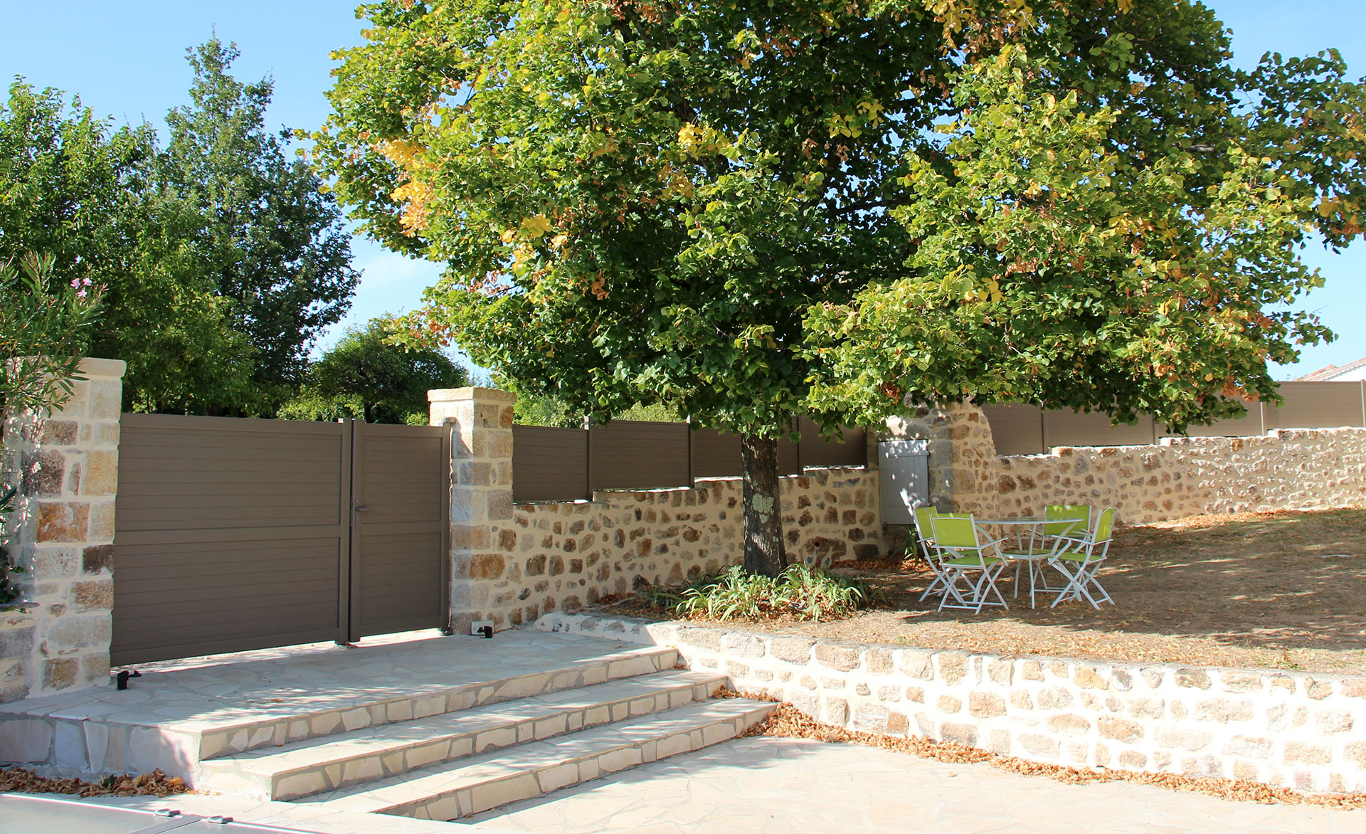 Le portail Disglaou peut aussi s'accorder avec d'autres pièces de menuiseries extérieures telles que la clôture afin de maximiser la sécurité de votre extérieur.
