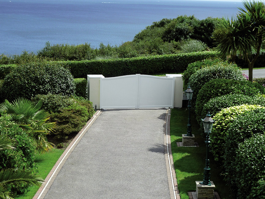 Le design classique du portail Ker est idéal pour tous les types d'habitat car celui-ci est cassé par la forme des sa structure en chapeau de gendarme.