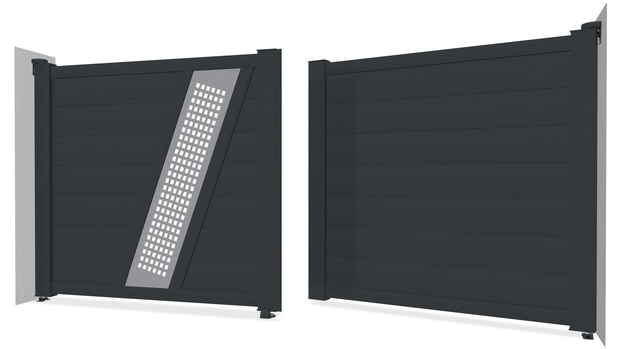 Le portail battant comporte deux décors et le portillon et le portail coulissant comportent un décor.