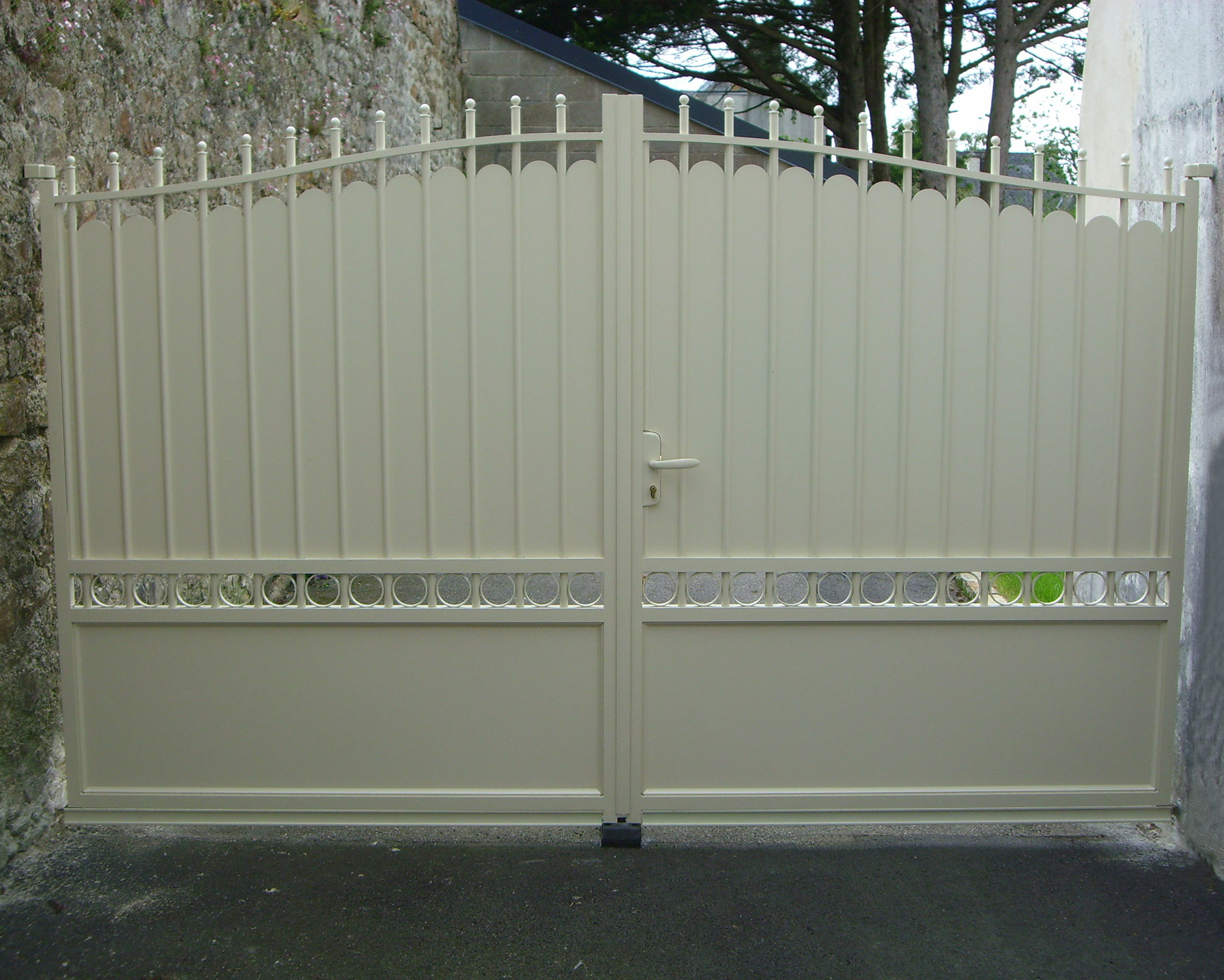 Le portail Plougerneau est plein mais adoucit par un bandeau ajouré aux lignes circulaires séparant le soubassement lisse du corps du portail.