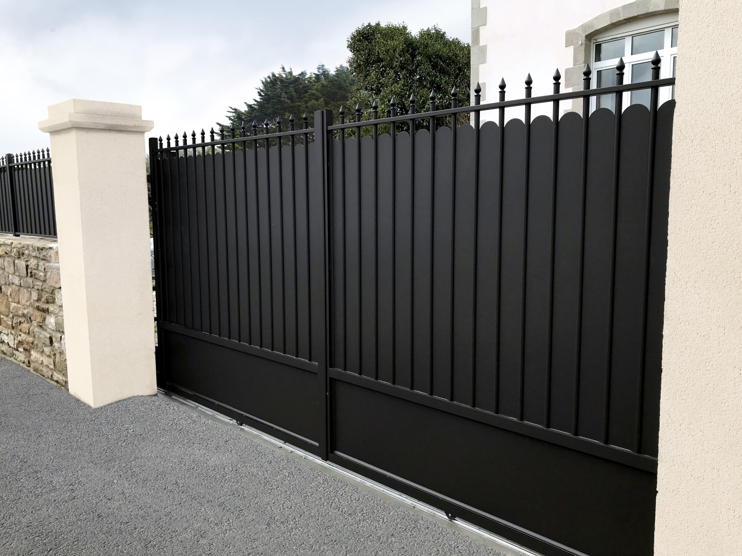 Description Bien que le portail Pont-Aven est plein, il reste délicat par ses lignes circulaires sur-élevées. Son soubassement est personnalisable ou peut rester lisse.
