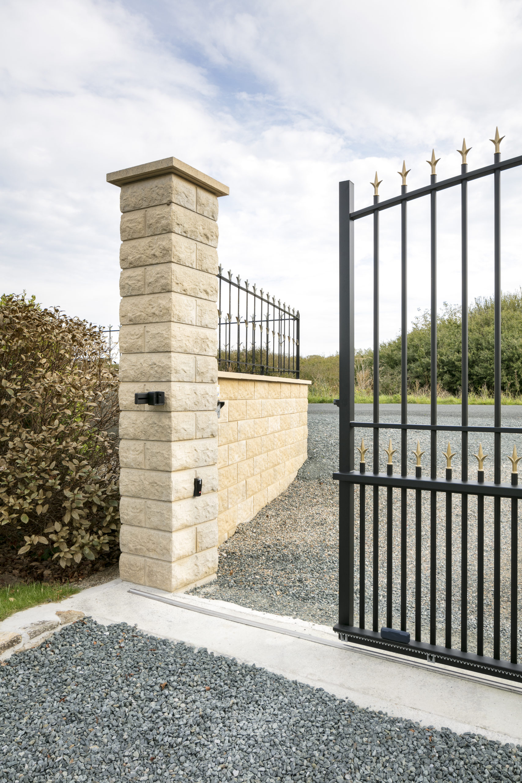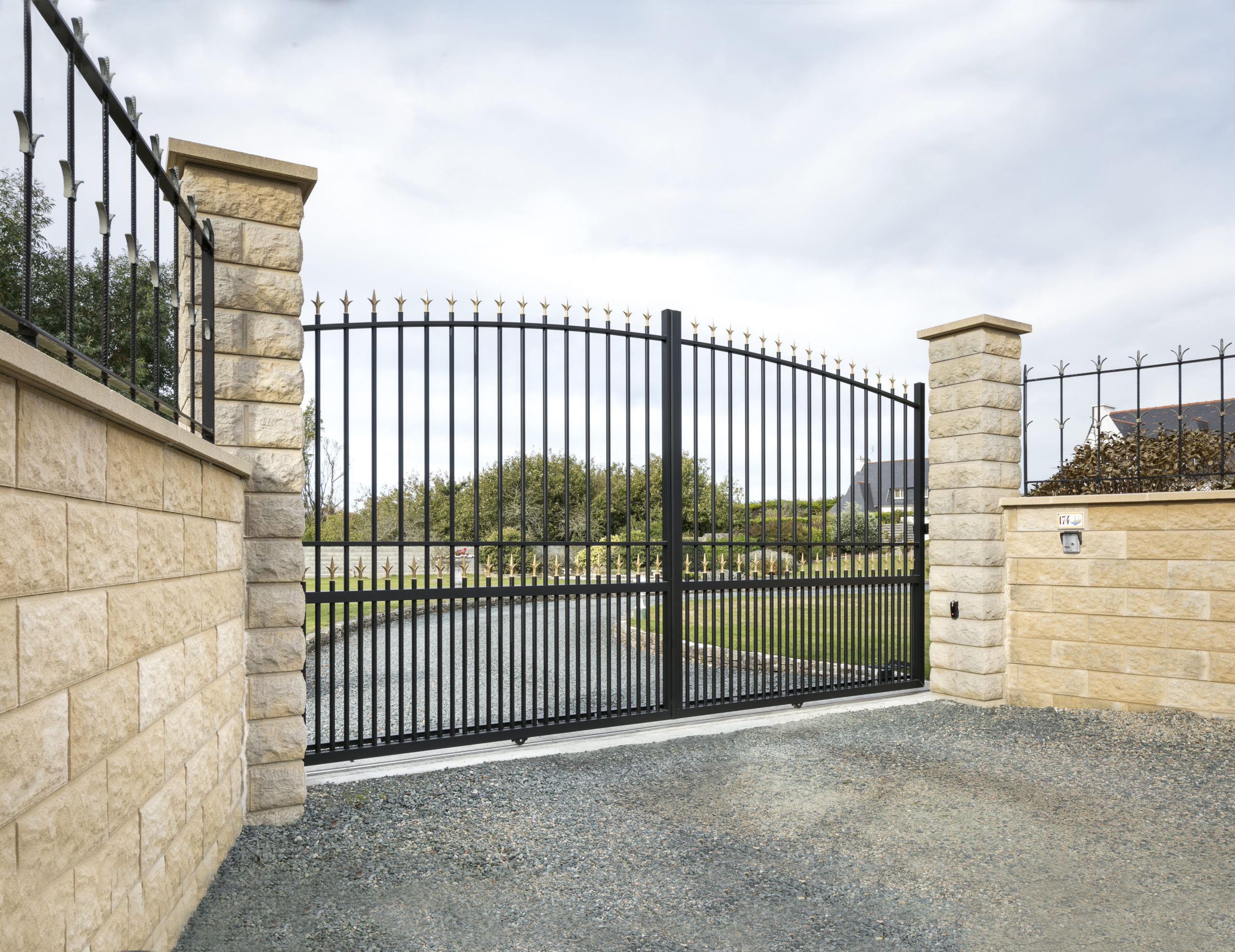Le portail Quimper est élégant et raffiné et offre une entrée majestueuse, appuyé par des tubes ajourés sur la partie supérieure et doublé pour le soubassement.
