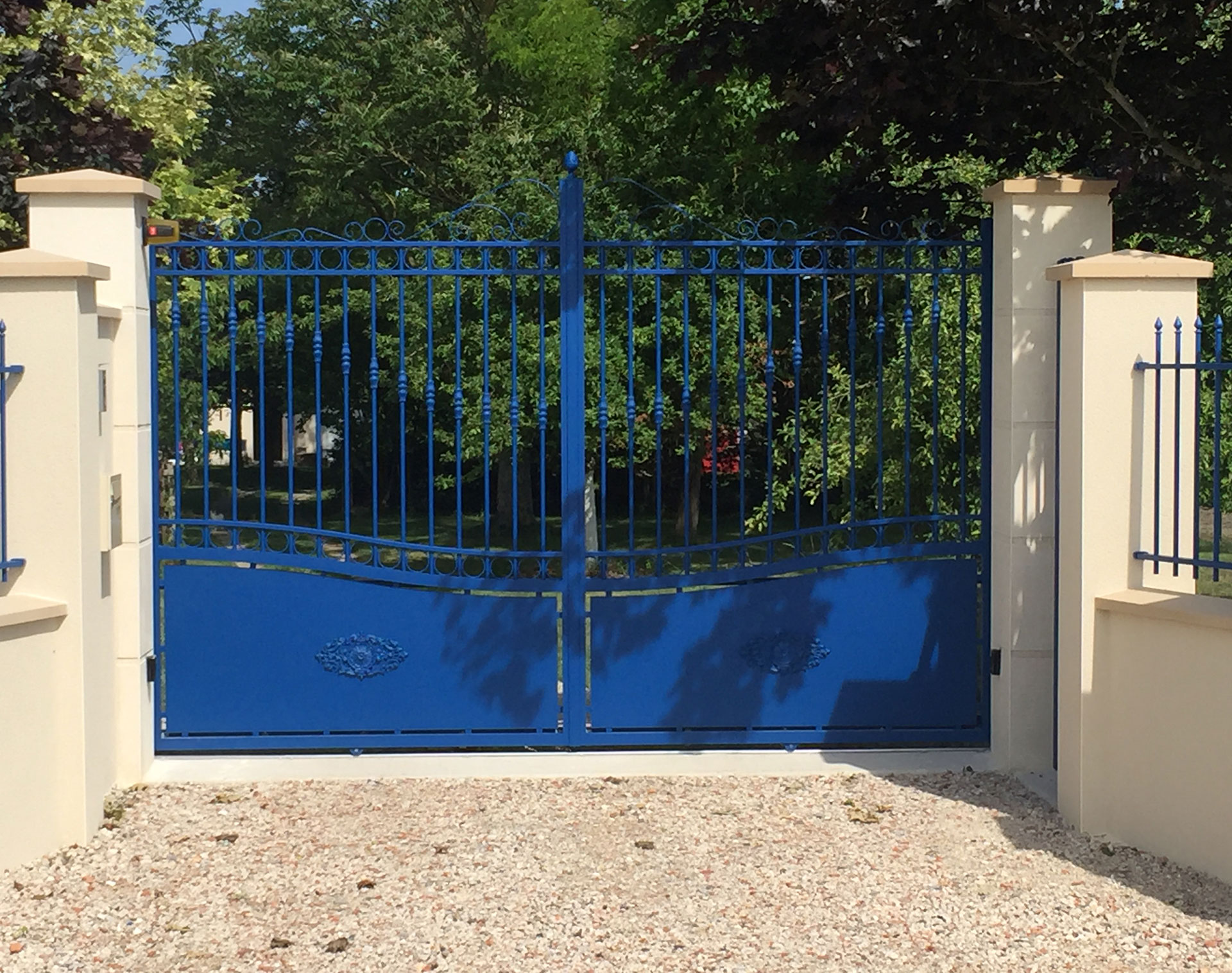 Description Le portail Berrien est droit par sa structure mais en forme de chapeau de gendarme par son soubassement. Ces parties sont séparées par des tubes verticaux avec des bagues dont la disposition suit les lignes de soubassement.