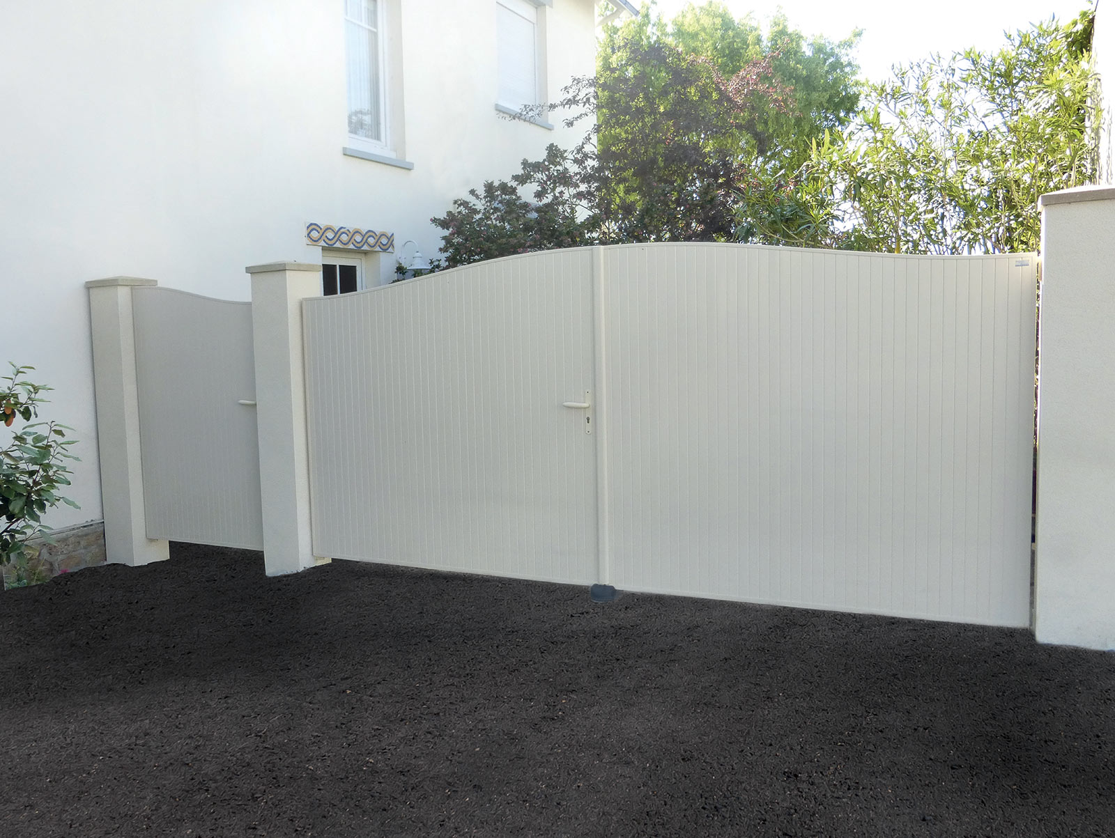 Le portail Groix est choisi pour ses qualités de résistance, de sécurité et de respect de votre intimité par son remplissage plein et sa structure bombée.