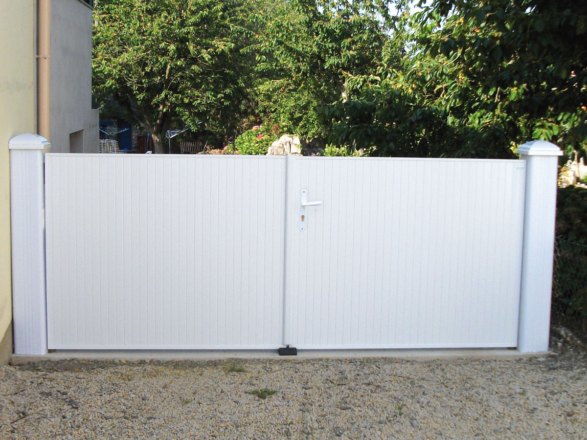 Le portail Jersey est entièrement recouvert de lambris. Sa matière lui permet d'allier résistance aux variations de températures et d'environnements. Son remplissage plein lui permet de cloisonner votre espace.