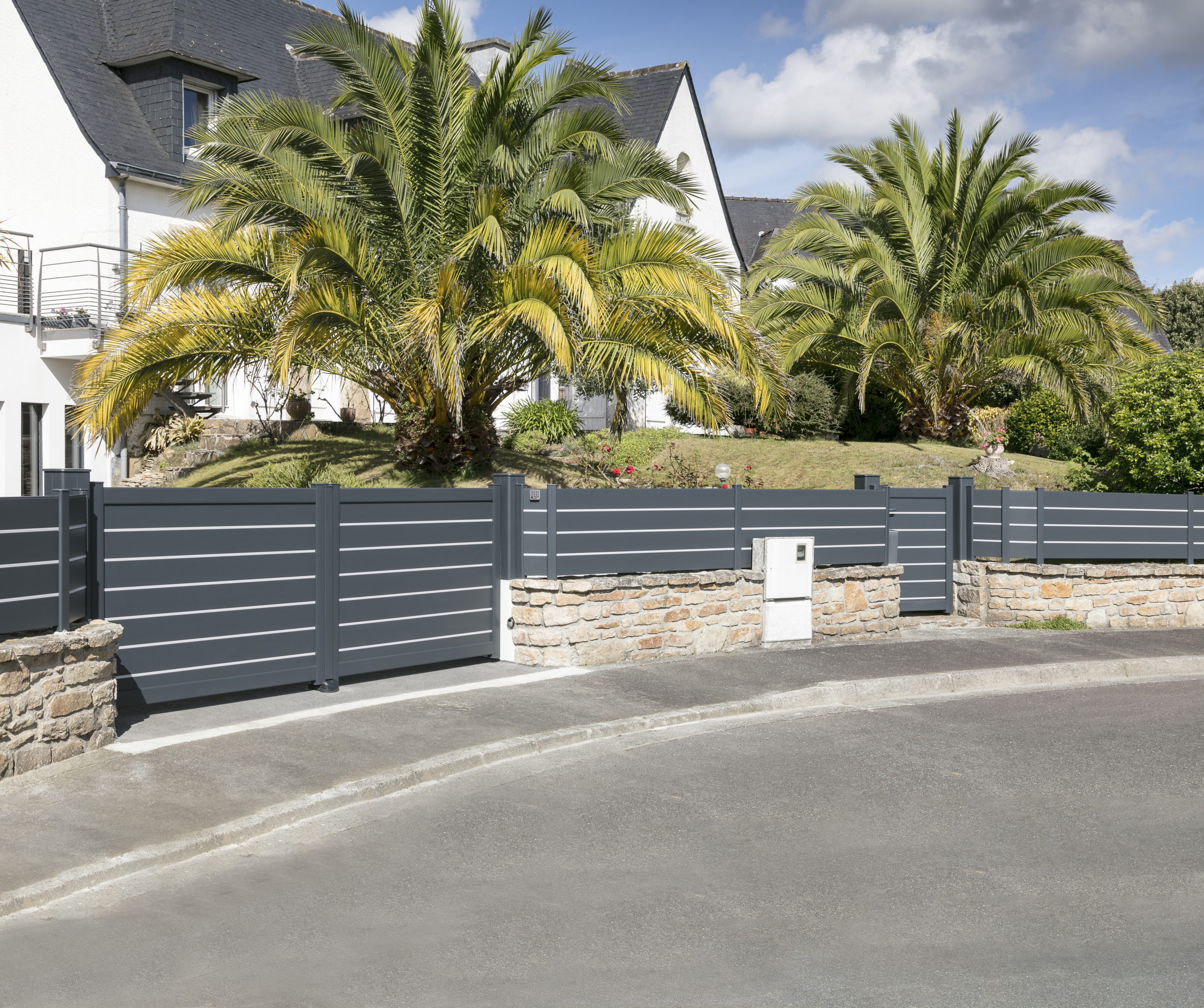 Le portail Stamm reprend les lignes verticales du célèbre tricot breton. Cette touche décorative est un réel atout et donne une identité à votre extérieur.
