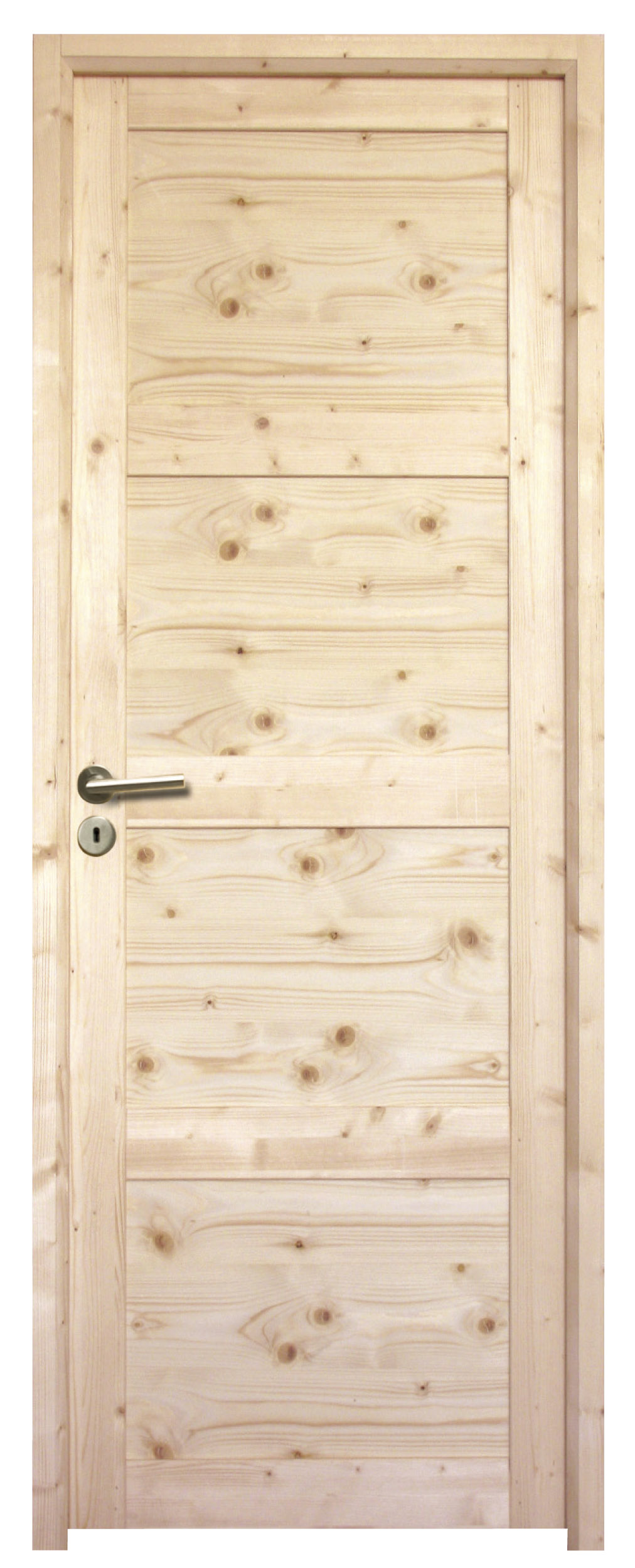 La porte d'intérieur Maurienne est structurée par un assemblage de lames de bois pour constituer le vantail de la porte.