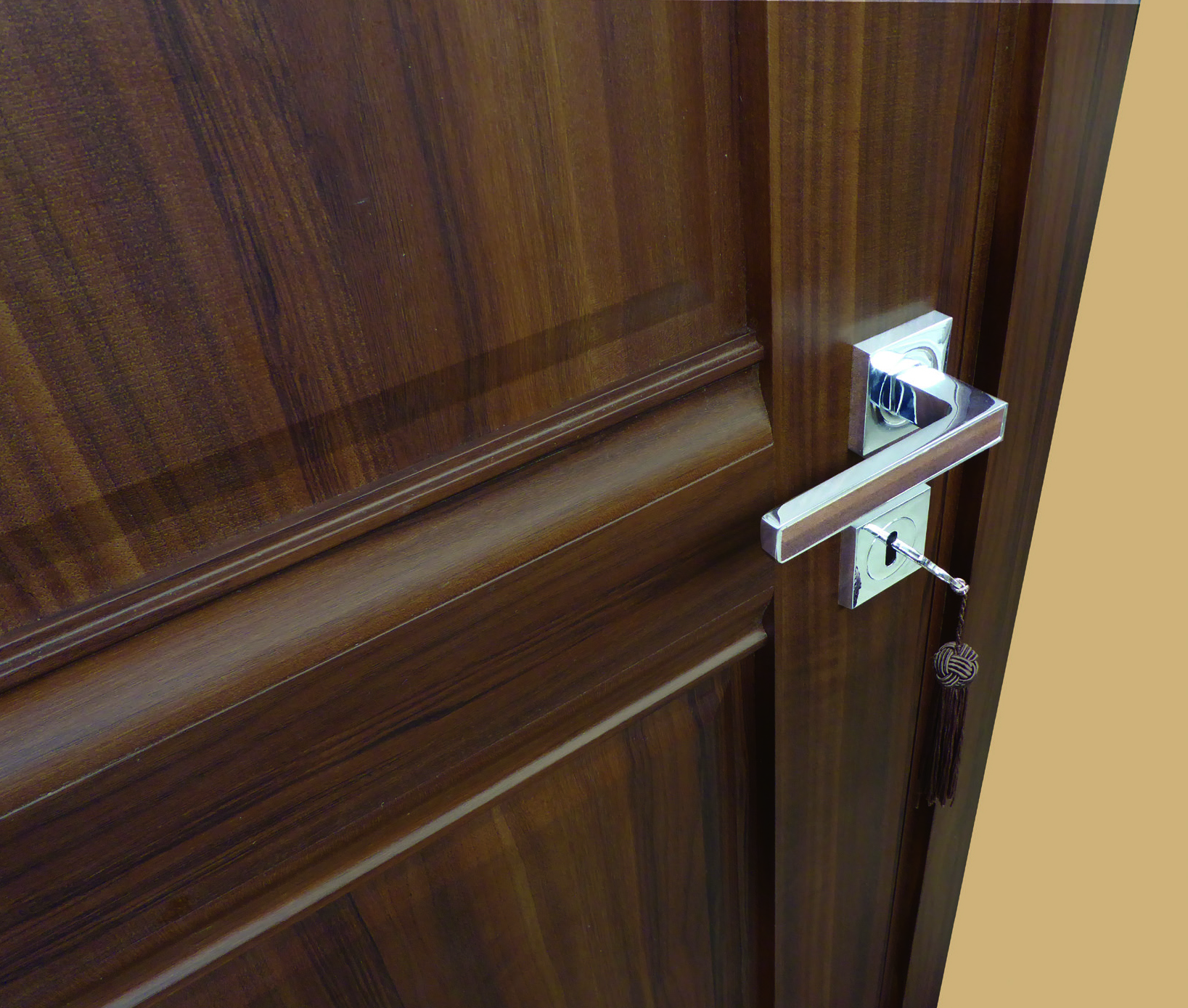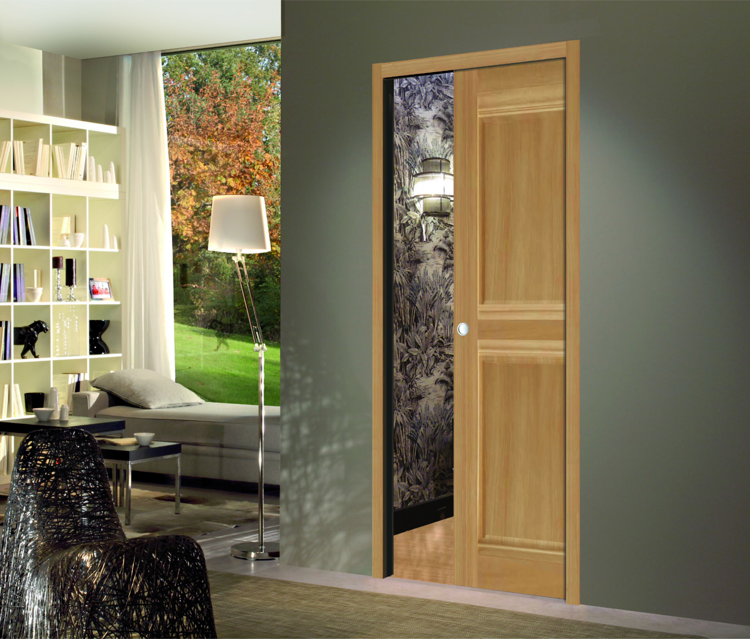 La porte d'intérieur Classique 2 reprend les codes traditionnels avec un vantail plein séparé par deux moulures encadrant les parties supérieures et inférieures.
