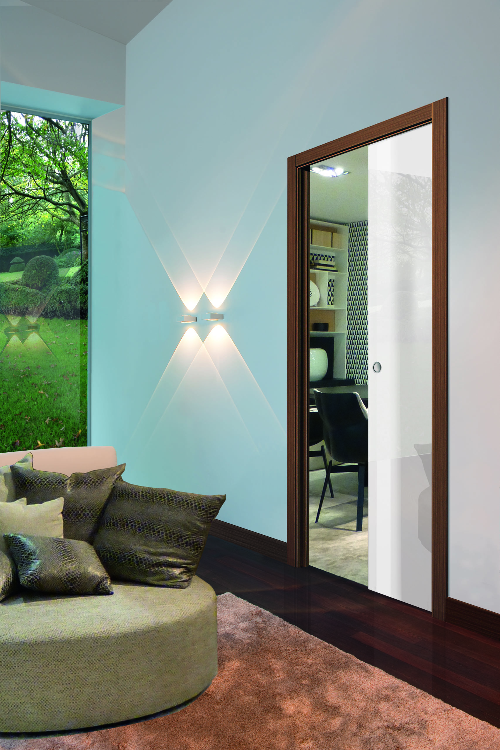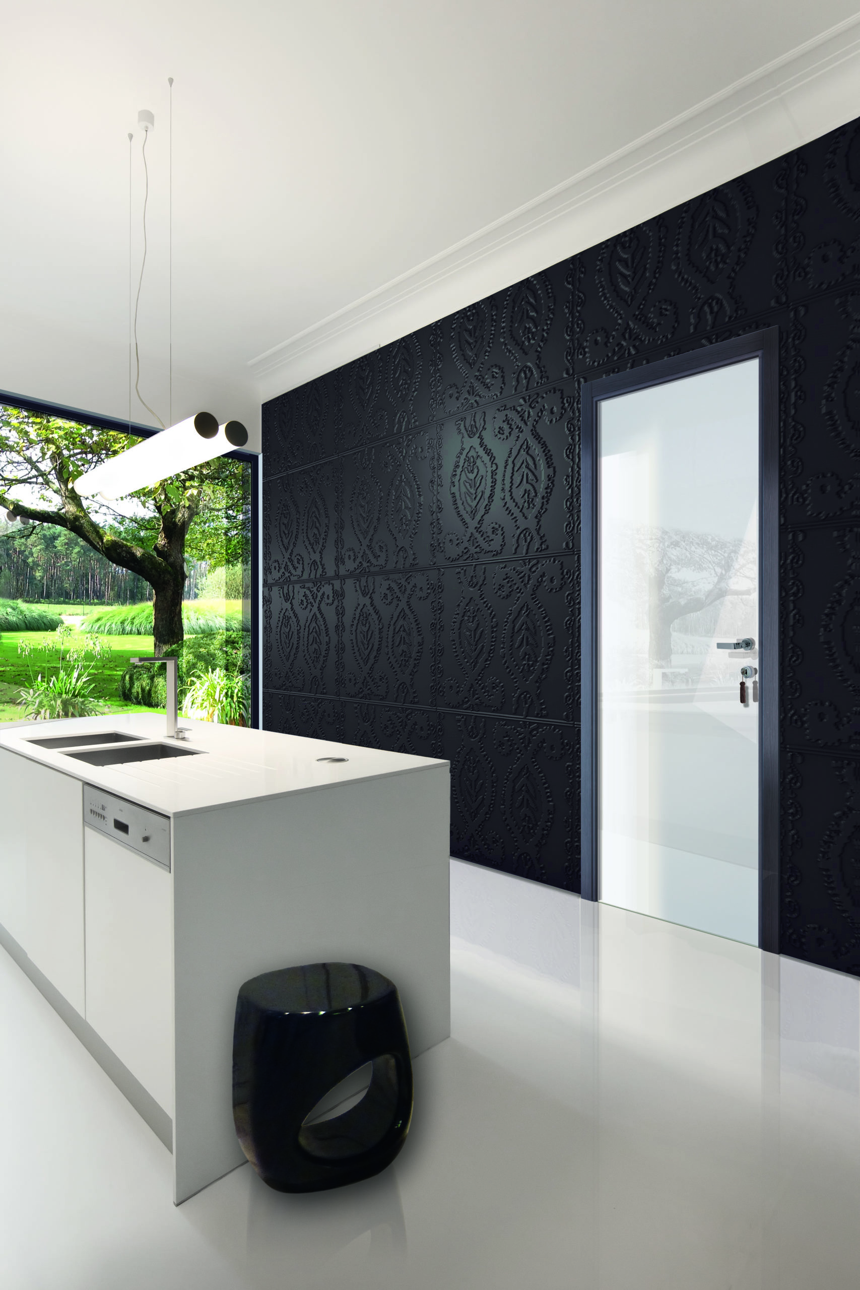 L'originalité des portes Glossy se tient dans la personnalisation de l'encadrement de la porte avec un choix entre le cuir ou le bois, eux-mêmes déclinables.