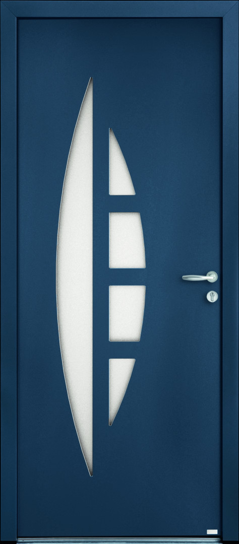 Le design de la porte d'entrée Apollo est composé de deux parties vitrées en arc de cercle. L'un plein l'autre divisé en quatre.