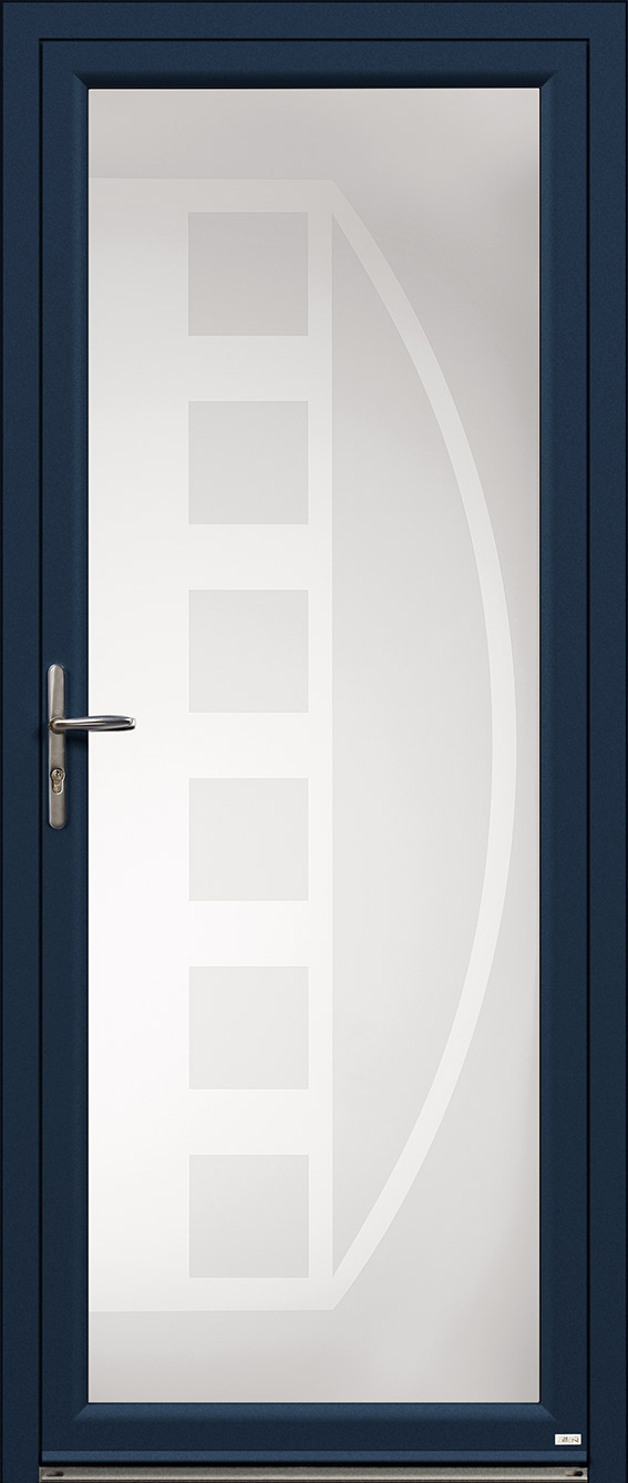 Le design de la porte d'entrée Candel 68 est représenté par un ensemble de carré compris dans une forme rectangulaire et d'une demi-lune. vide.