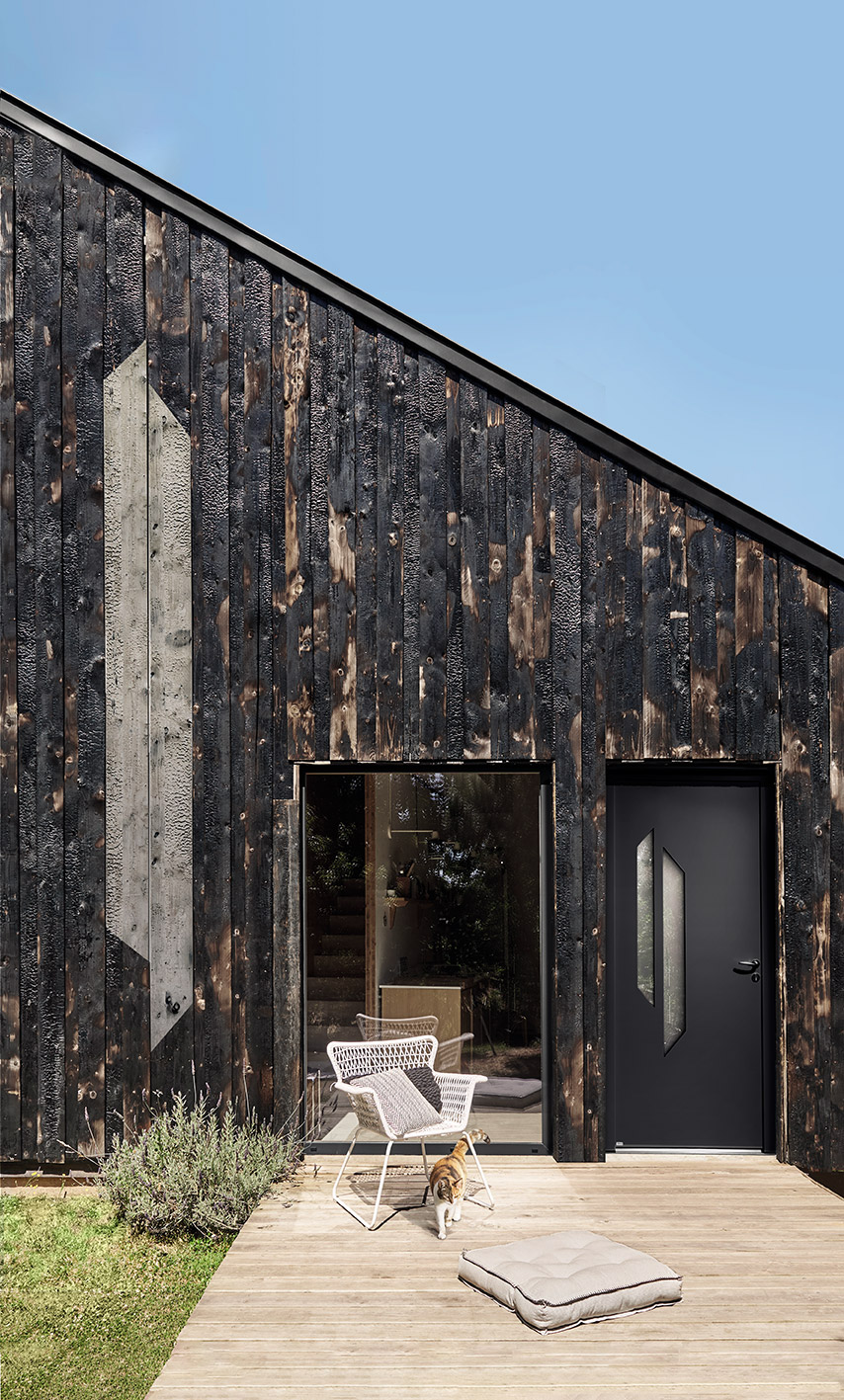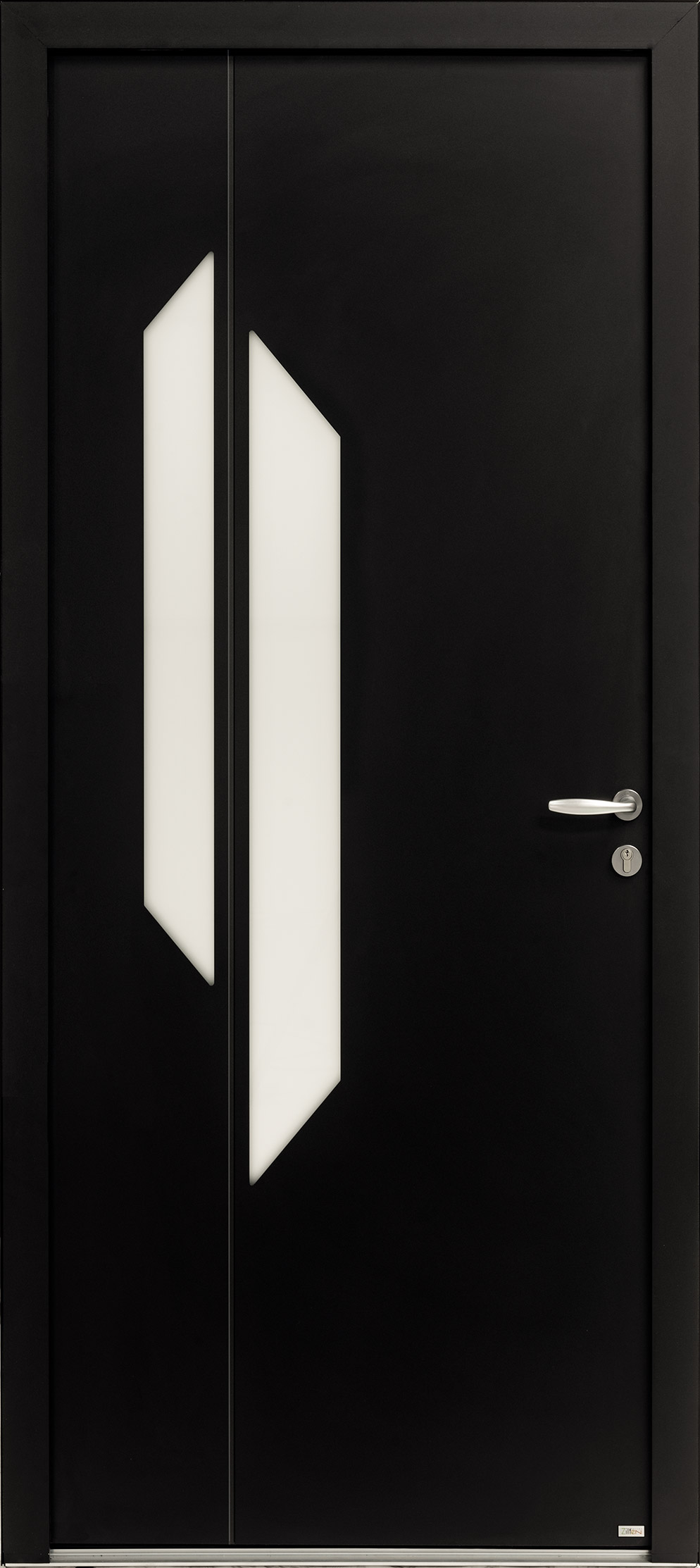 La porte d'entrée Cytiss 13 se distingue par son design épuré et ses formes géométriques opposées.