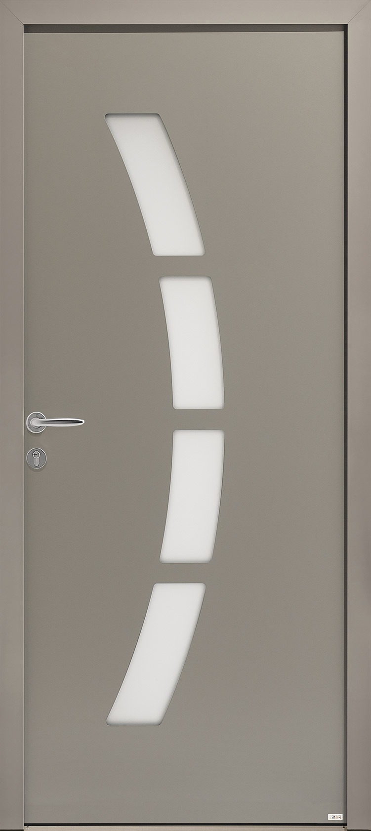 Le porte d'entrée Cityss 8 dispose d'un vitrage en arc de cercle divisé en quatre parts égales.