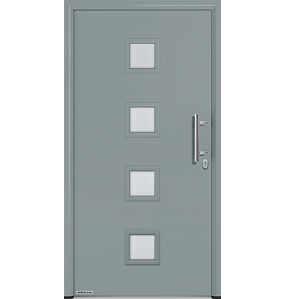 Poignée en acier inoxydable HB 14-2 sur panneau acier, vitrage continu : double vitrage isolant, extérieur verre de sécurité feuilleté, intérieur verre de sécurité trempé, Mastercarré, valeur UD jusqu'à 1,3 W/ (m²·K)*