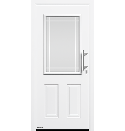 Poignée en acier inoxydable HB 14-2 sur panneau acier, triple vitrage isolant, extérieur verre de sécurité feuilleté, milieu Float sablé avec bandes transparentes, intérieur verre de sécurité feuilleté, transparent, valeur UD jusqu'à 1,0 W/ (m²·K)*