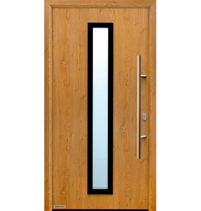 Poignée en acier inoxydable HB 38-2 sur panneau acier, avec vitrage en applique : triple vitrage isolant, extérieur verre de sécurité feuilleté, milieu Float sablé, intérieur verre de sécurité trempé transparent, valeur UD jusqu'à env. 1,0 W/(m²·K)*