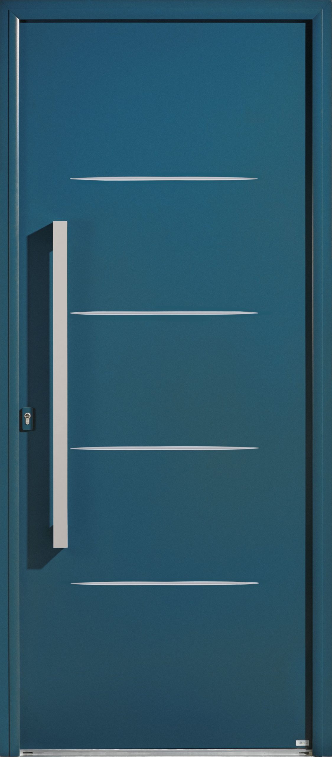 La porte d'entrée Griff 1,1 duo se caractérise par son décor griffé avec ses inserts inox et sa barre de tirage.