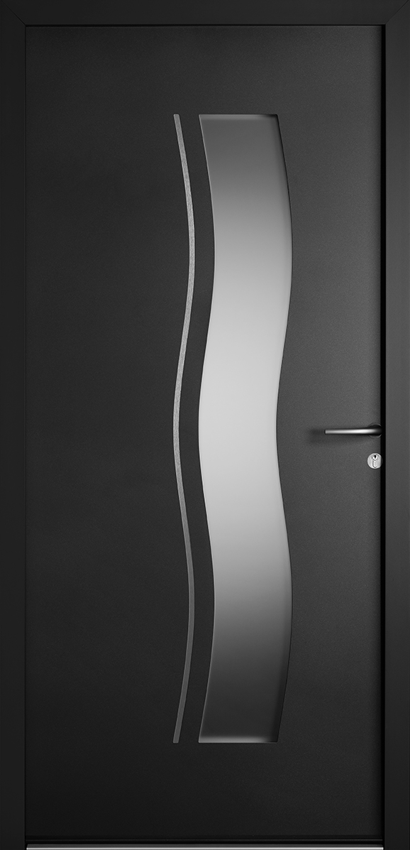 Le design de la porte d'entrée Hirel est fluide par les courbes arrondies sur son décor, renforcé par une rainure reprenant ce mouvement.