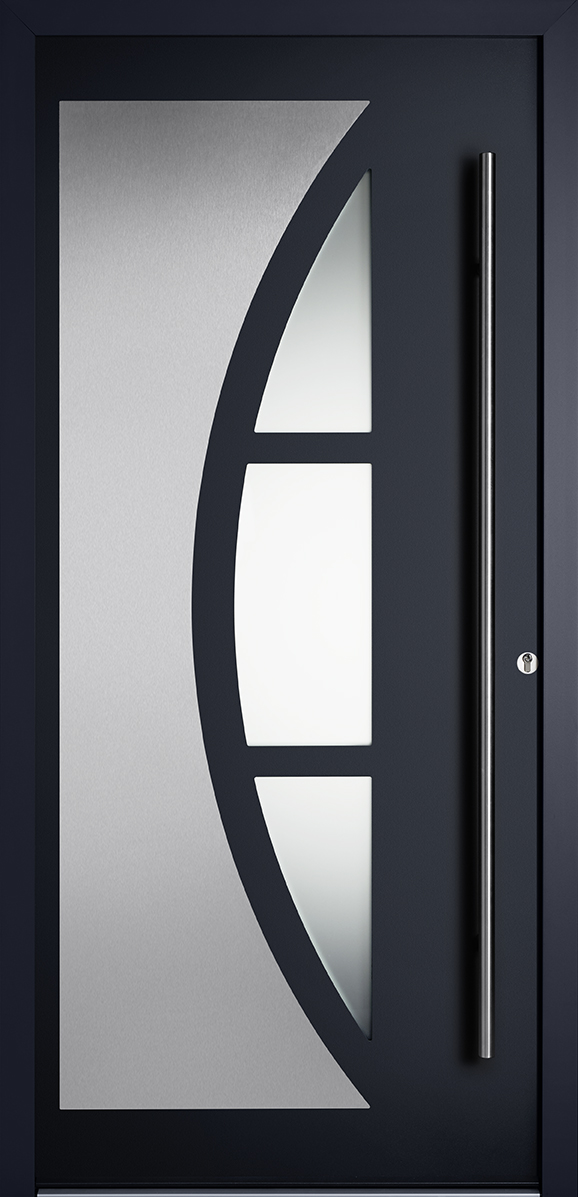 Le triptyque du vitrage proposé par la porte d'entrée Hoëdic permettra à ses propriétaires de bénéficier de l'alliance entre modernité, luminosité et sobriété.