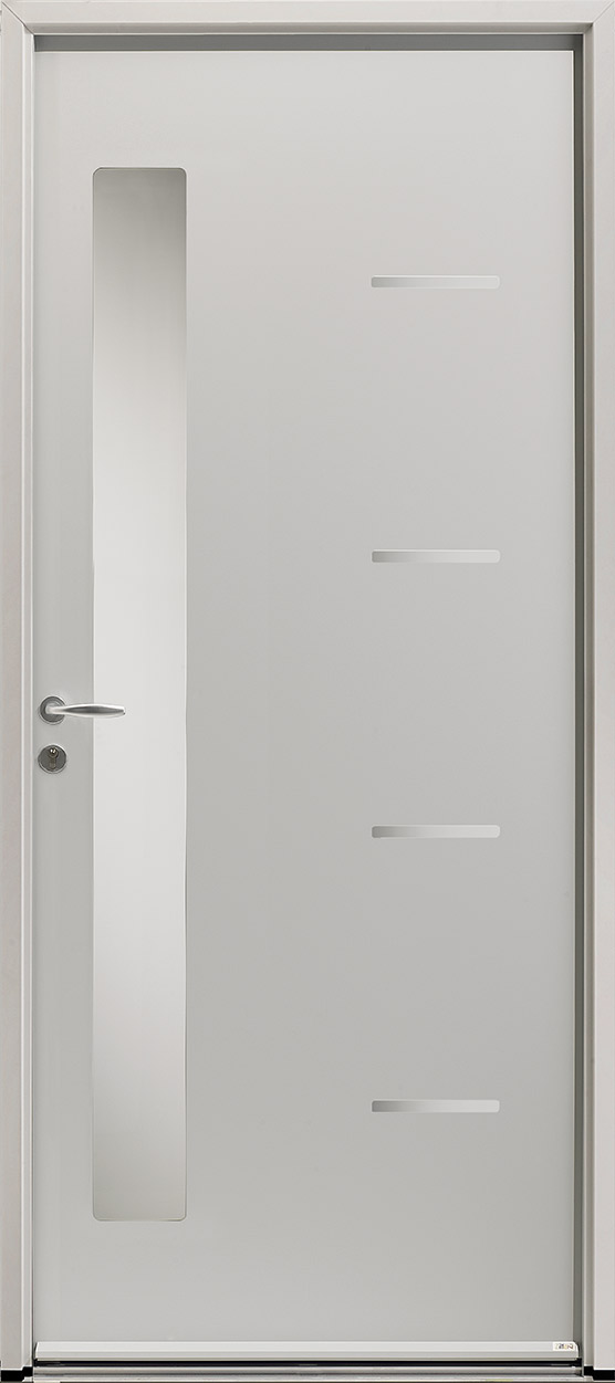 Le décor présent sur la porte d'entrée Ioko 20 est présent sur les deux faces de la porte. Elle peut être personnalisée par la présence d'un semi-fixe coordonné et laqué.