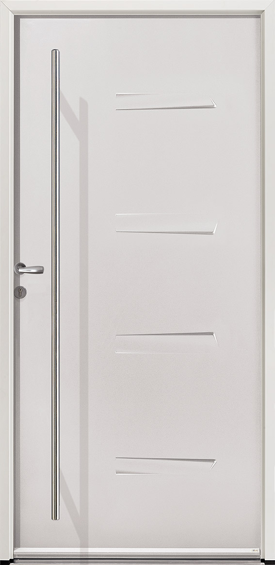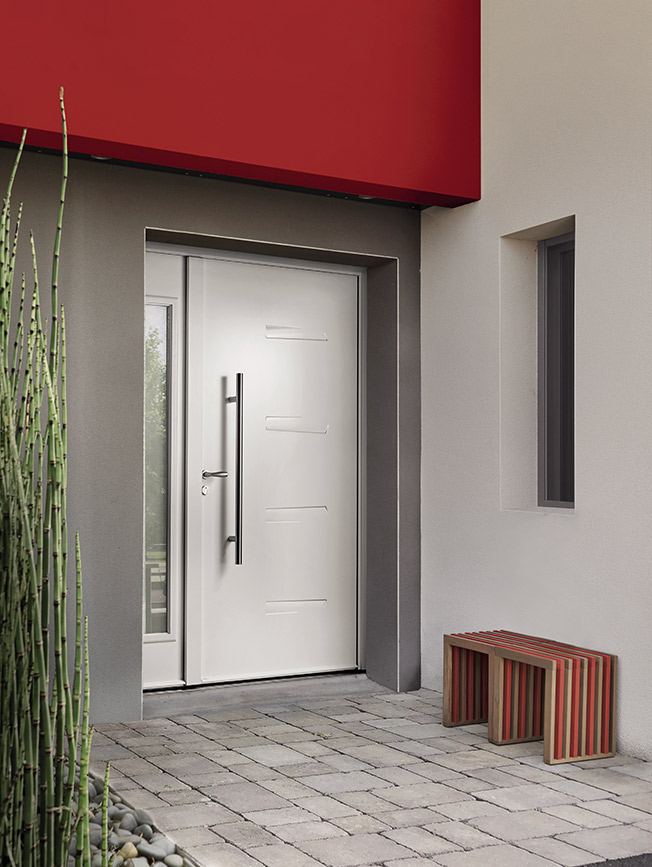 La porte d'entrée Nagano est personnalisable à souhait entre les options de laquage, de quincailleries (barre de tirage exclusive) et serrures.