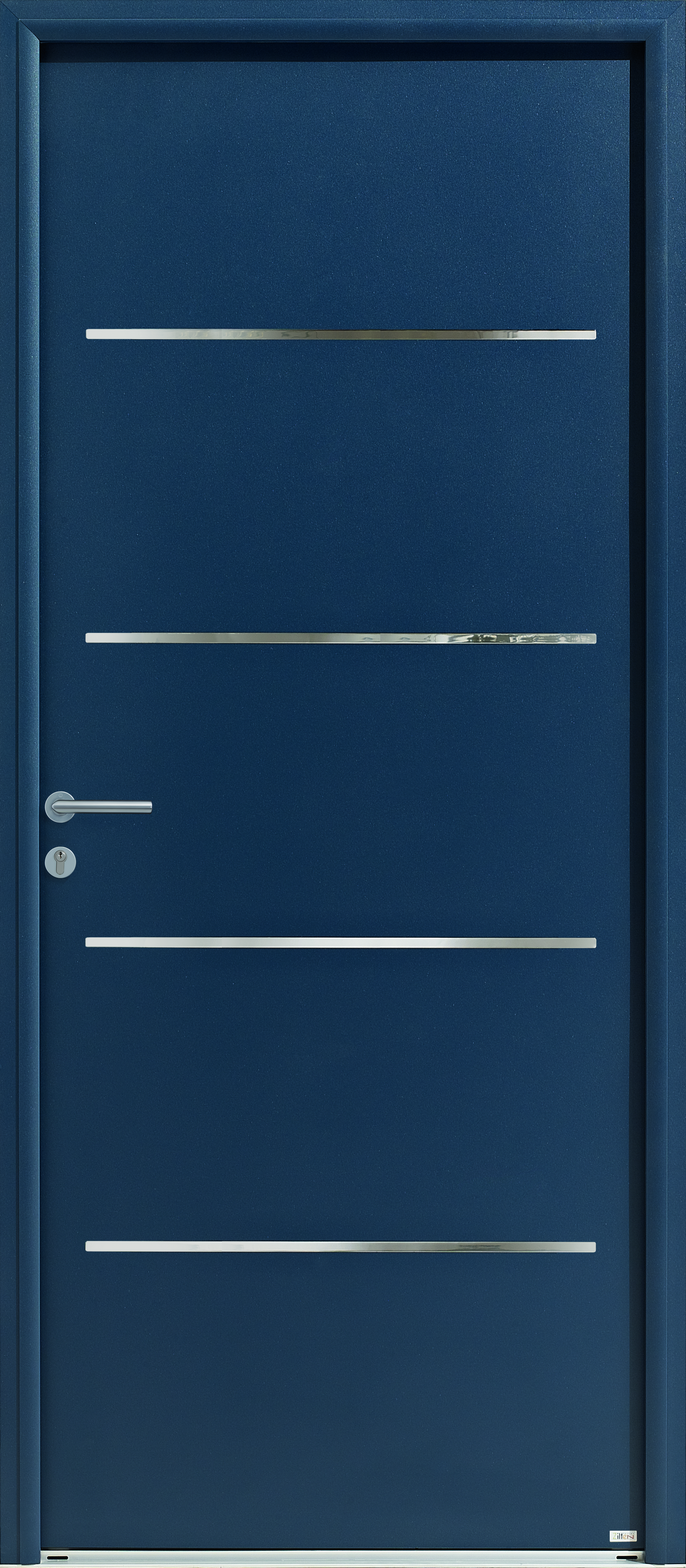 Description La porte d'entrée Opus 2 Duo est caractérisée par 4 décors inox verticaux pleins.