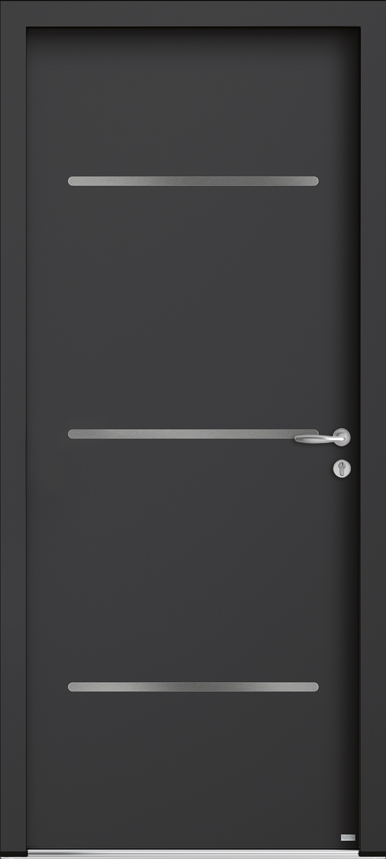 La porte d'entrée Poliade est composée d'un vantail rainuré des deux cotés de la porte.