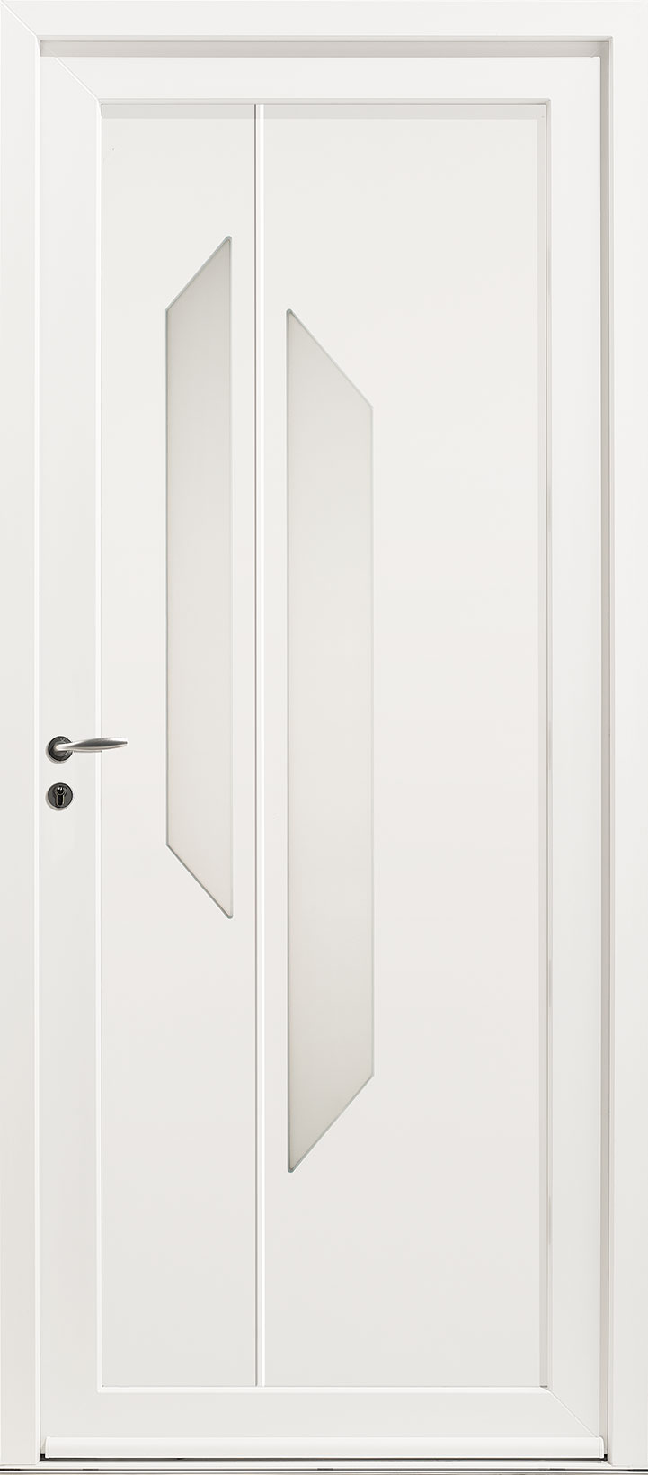 Le décor de la porte d'entrée Kellys 7 représente deux formes géométriques l'une plus longue que l'autre. Ce décor est présent sur les deux vantaux de la porte.