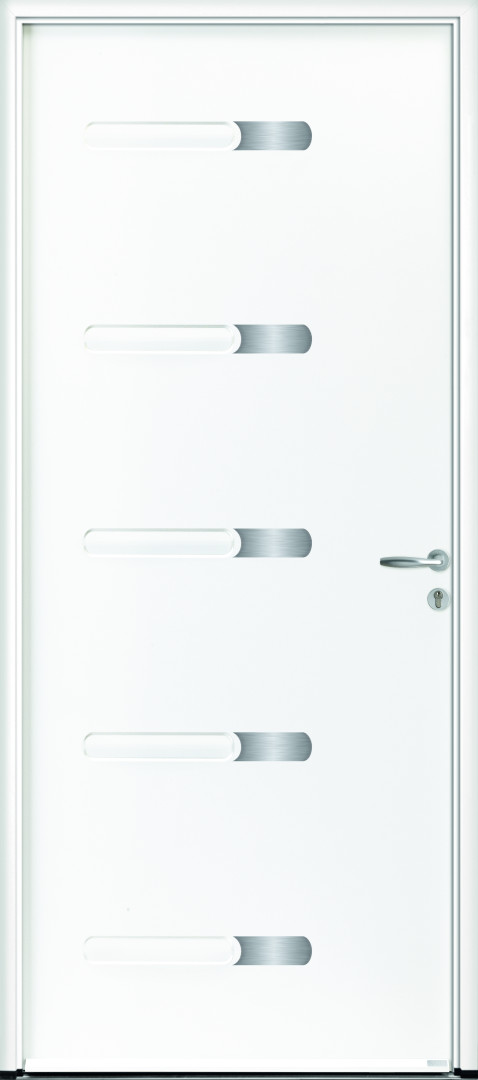 La porte d'entrée Tigra est composée de cinq inserts aux finitions inox.