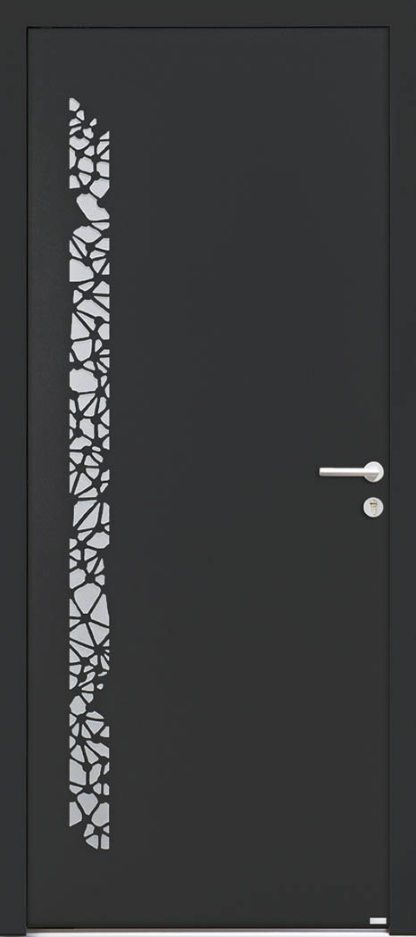 Dotée d'un design graphique rendu possible par une superposition de deux tôles en aluminium, la porte d'entrée Topaze habille aussi bien votre intérieur que votre extérieur. Son design peut s'accorder avec les portails désignés par Kostum.