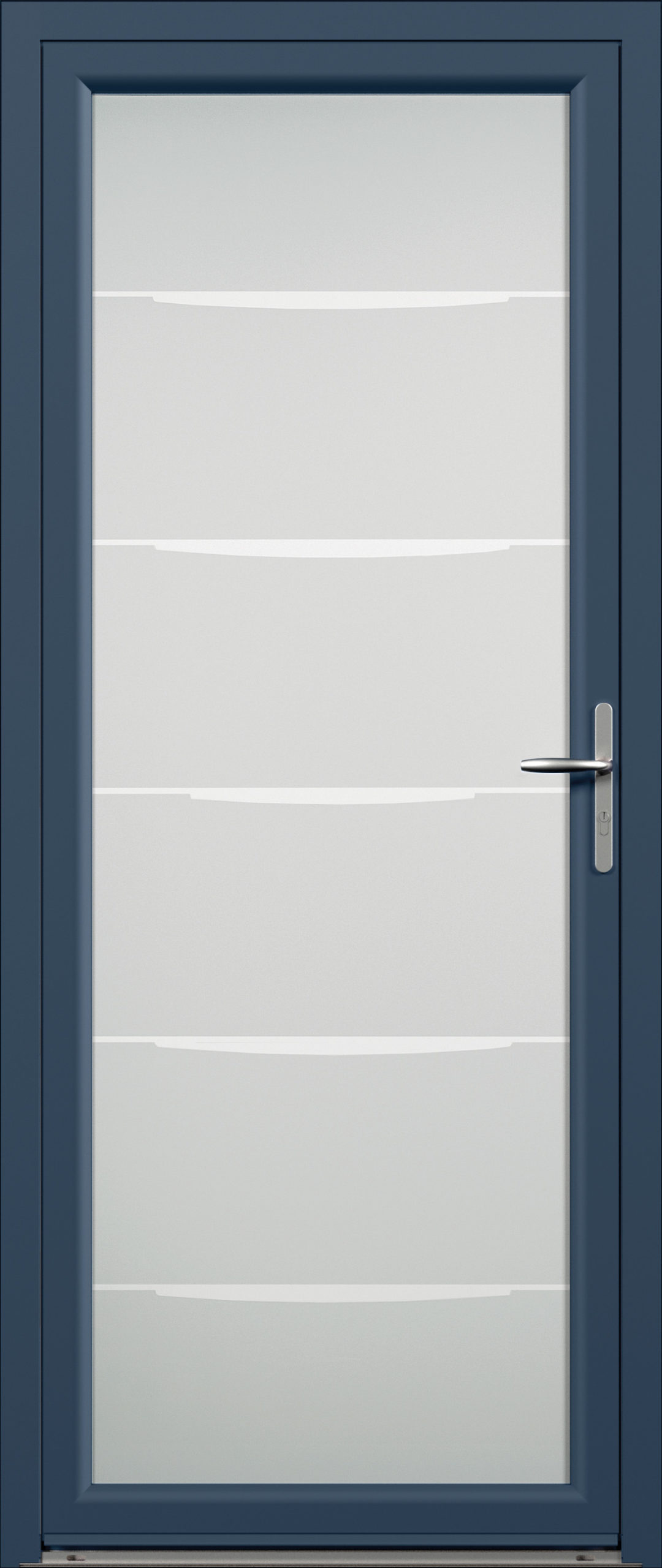 La porte d'entrée Yoga peut se décliner sous plusieurs façons avec une partie fixe en dormant avec un vitrage sablé.