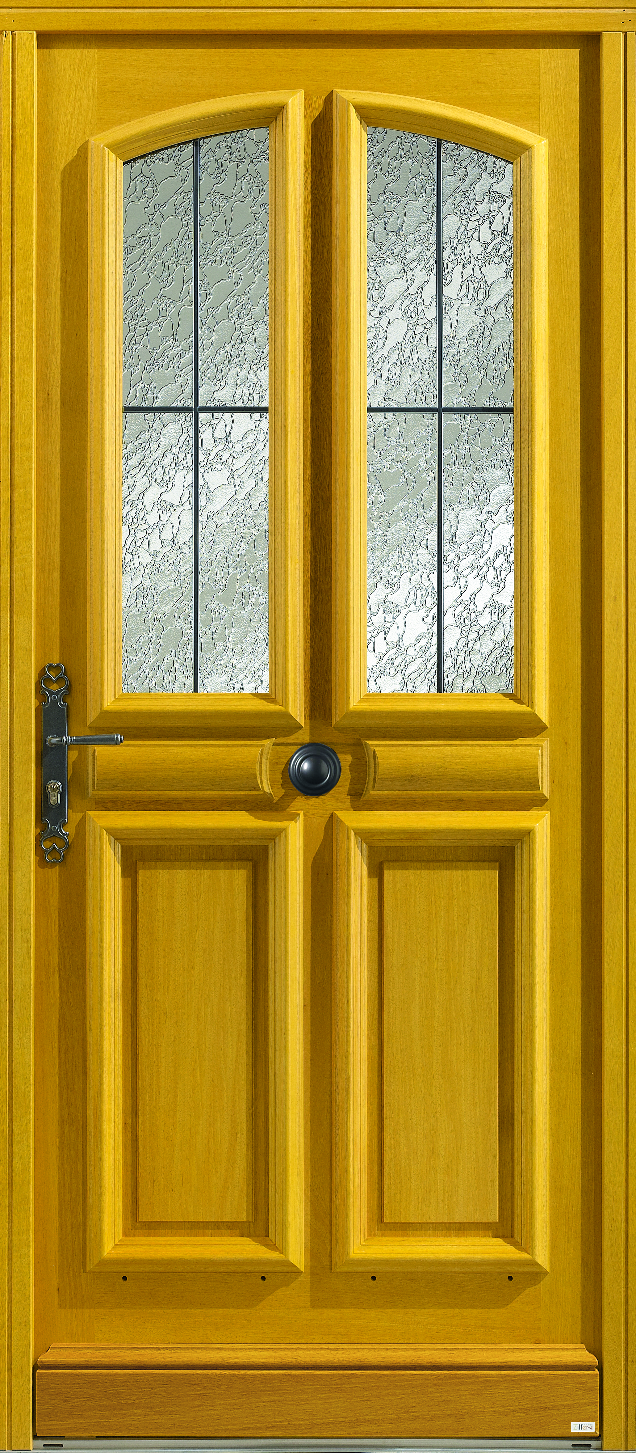 La porte d'entrée Auteuil dispose d'un vitrage cintré en deux parts égales formant 8 carreaux. Le volume de la porte d'entrée est marqué par les moulures centrales et celles en soubassement.