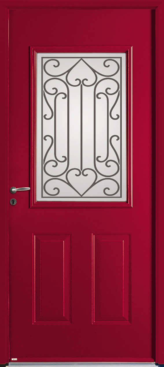 La porte d'entrée Charley 2 est recouverte d'un vitrage centré sur la partie supérieure de la porte avec un motif en fleur de lys.