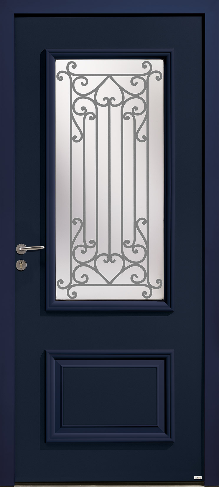 La porte d'entrée Colombelles a une allure sophistiquée grâce à la finesse de sa sérigraphie.