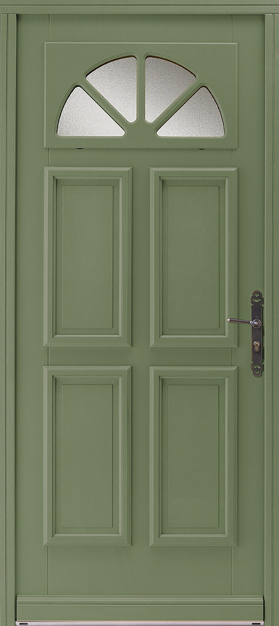 La porte d'entrée Londres est composée d'un panneau plat avec bande pour la face extérieure et des moulures pour la face intérieure.