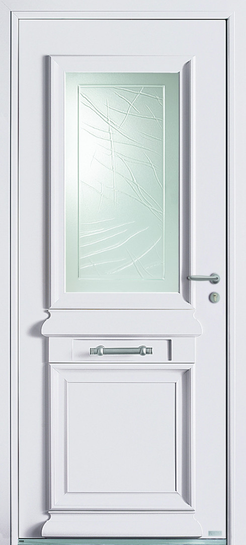 La porte d'entrée Métis dispose d'un esthétisme traditionnel avec un matériau contemporain. Le travail artisanal pour la conception du vitrage rend la porte unique.