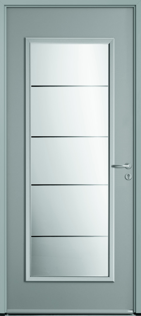 La porte d'entrée Parallèle porte bien son nom par ses barres latérales parallèles présentes sur un vitrage centré.