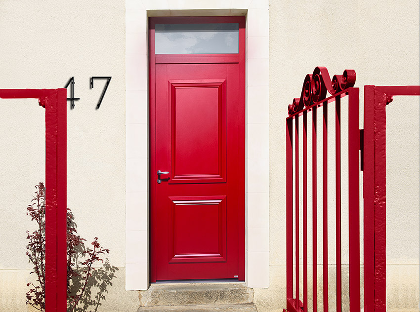 La porte d'entrée Picto dispose d'un vantail plein avec deux moulures sur les deux faces intérieures et extérieures.