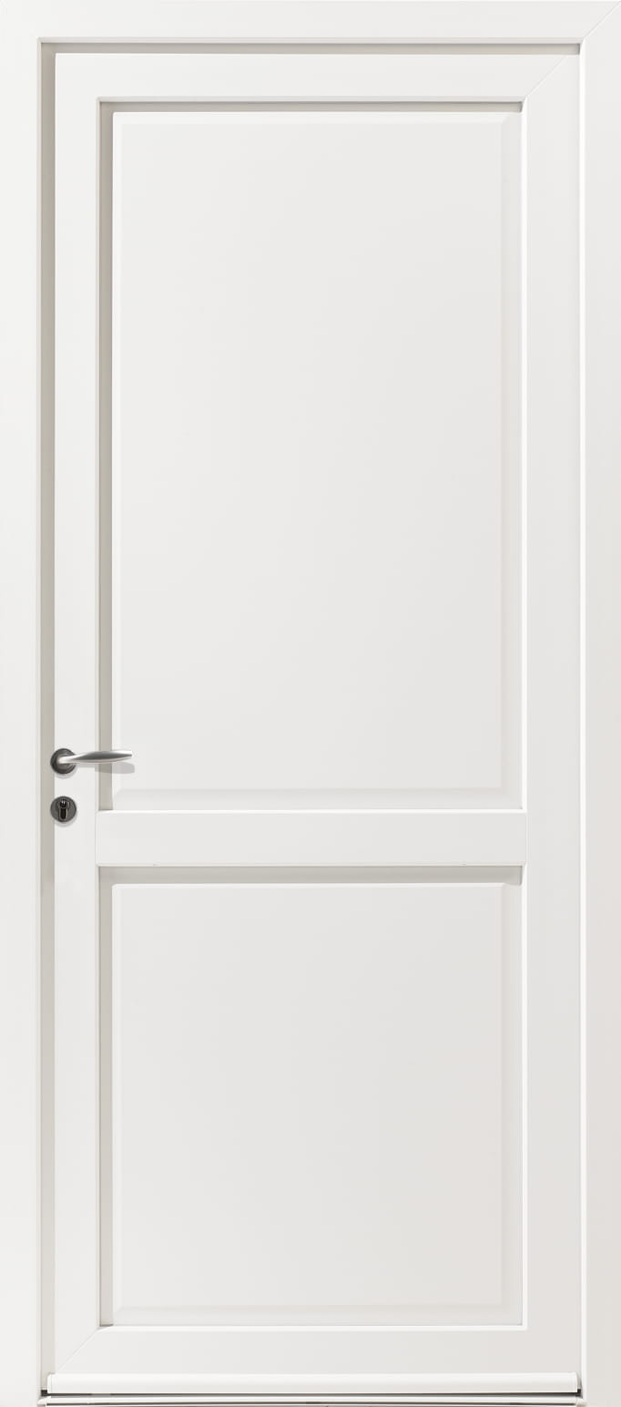 La porte d'entrée Tracy 2 dispose d'un vantail lisse et plein, seules les deux moulures distinguent la partie haute de la partie basse.