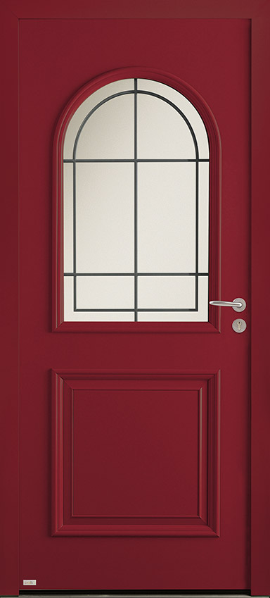 La porte d'entrée Siero dispose d'un vitrage cintré avec des lignes linéaires et circulaires.