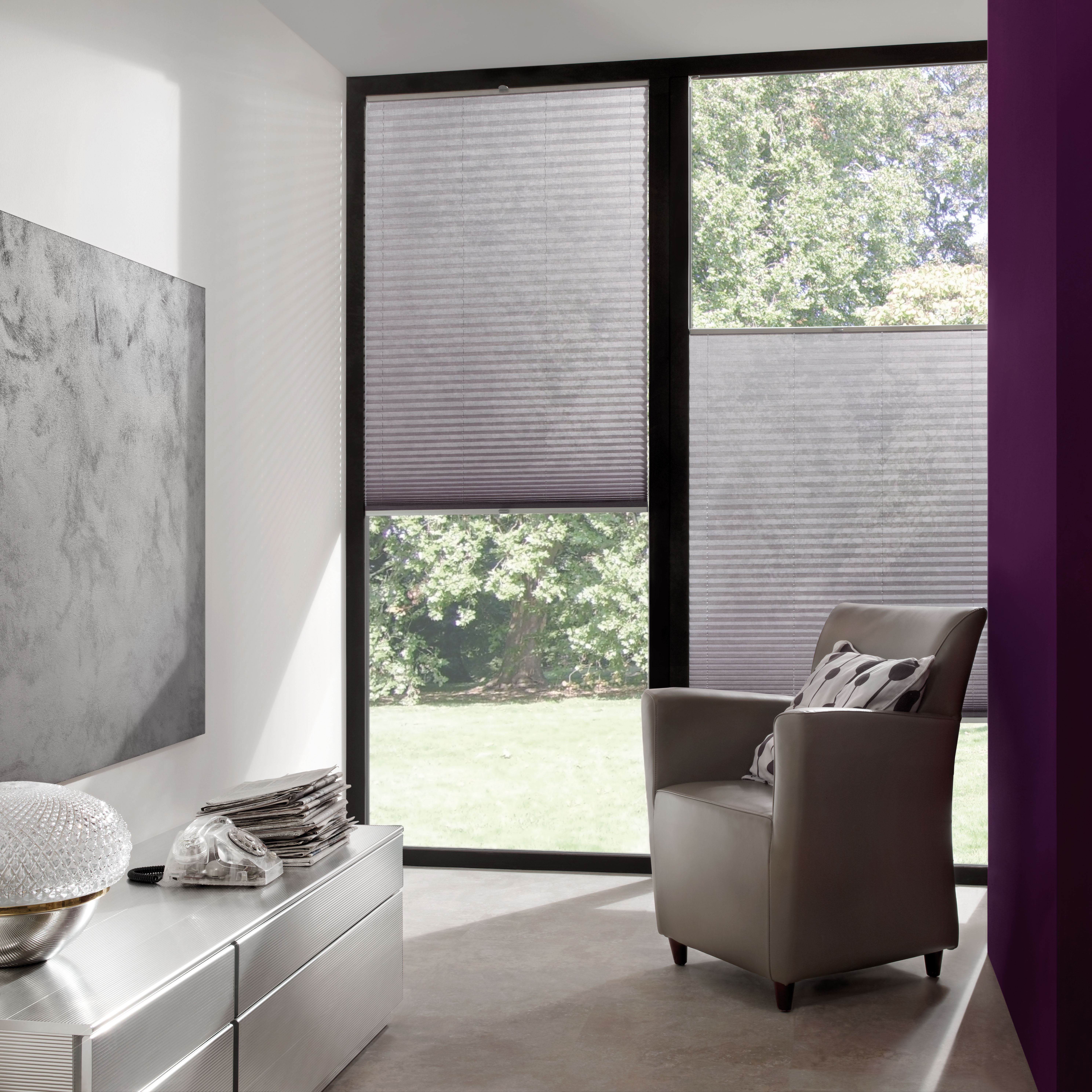 Le store intérieur plissé est multi-position mais aussi multicolore avec la possible de mélanger les couleurs grâce aux solutions Vitrine ou Duo.
