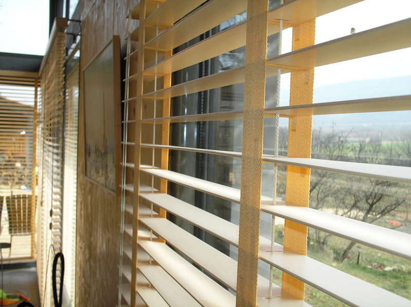 Le bois utilisé pour ce store vénitien renforce la chaleur de l'intérieur de la pièce. Il est personnalisable avec les galons et les échelles en satin.